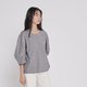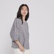 七分袖的格子上衣,宽松立体剪裁的泡泡袖型让上衣增加了可爱感,纯棉材质亲肤舒适。