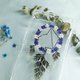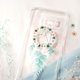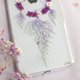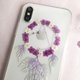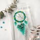 以鲜艳的干花和幼线拼成网圈,配合手染的渐变色叶子模仿轻盈的羽毛,加上水钻的点缀,精致的捕梦网雏型便完成了。