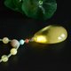 不可多得的的珍藏级别的天然琥珀金绞蜜意境吊坠,材质天然,无裂无杂,无任何优化。吊坠呈扁水滴型,主体正面圆润饱满,背面平,微有圆弧。表面莹润亮泽,质地细密,肌理细腻,触手温润熨贴。琥珀内部金珀呈鹅黄色,水润通透,清澈如水晶一般,时光凝固的蜜意在吊坠里形成独特的景致。蜜意汇聚成团,如一个小小的圆,在吊坠左下方,蜜意与金珀交融处绒感十足,向内又如云海一般,在金绞蜜中也是相当特别的存在,云海淼淼的云团,云影婆娑如漂浮在太空中的云海掩映的岛屿,四周间或闪耀的细小水泡闪着微光,远处有些微飘过来的小深棕色,底部有如同珊瑚的浅棕黄纹理,为这空中浮岛增添了一丝梦幻色彩,超凡的仿若仙境一般。搭配天然南红冰红圆珠,天然绿松石圆珠,天然盐源玛瑙花开富贵雕刻桶珠,天然琥珀金绞蜜圆珠做链首链身。天然金珀心经雕刻圆珠,绿松石小圆珠,金绞蜜圆珠做链尾,手工编绳制作。整体素雅古典,甜美清浅,自用送人皆宜。