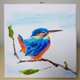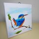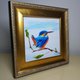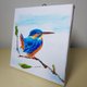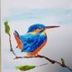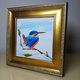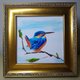 《漂亮的小翠鸟》油画的笔法、突出了翠鸟漂亮的羽毛纹理和艳丽的色彩、这只可爱的翠鸟、站在俏丽的枝头、眺望的远方、胸怀大志、寓意: 前程无限美好!
