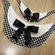 - 狗猫围巾,美黑款式,布料为白色交替色,蝴蝶结为黑缎带。