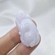 ►冰润紫罗兰翡翠,质地细腻通透、色泽柔和梦幻,带有淡淡紫光,呈现出高雅气质。九尾狐采静卧姿态设计,线条流畅自然,神情宁静安然,展现内敛的魅力与灵气。