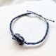 搭配蓝色系蜡线编织而成,手环可伸缩调节