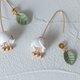 - 选用14KGF的金属丝制成较长的耳勾,再将软陶制的圆花装在其前端,并在耳挡前加入小叶,让叶子悬挂在耳勾上。