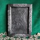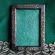 Black gothic wooden frame (for photo 4*6 inches). The three-dimensional drawing is made in the form of masonry and lightly covered with colored wax (gold or silver). The frame has a wall mount that can be installed on the wide or narrow side by yourself. The frame also has a table leg. For international shipping, the frame comes with a transparent silicone cover instead of glass.