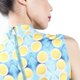 - “香港日与夜系列 ”以各种香港当地文化为特色. 蛋挞是香港的特色小吃,并印在这款无袖抽绳聚集连衣裙上。抽绳褶皱是其设计特色,而平纹针织面料的主面料具有弹力和舒适感。
