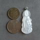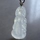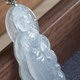 一件漂亮的白冰站观音吊坠,雕刻线条流畅精致,观音脸相好看,姿态优雅。翡翠冰感好,棉絮相对少,合眼缘别错过!