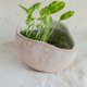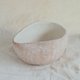 手中的白糖霜,一手就可捧起的陶器,陶器上有白色的细粉,就像洒在上面的白糖霜,但不会掉色喔!里面是白色雾面肌理,可当食器或要搭花器或放些小物都很适合喔!
