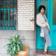 门襟上有八颗扣子,随意扣上,轻软的布料做出自然的造型。