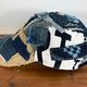 将日本传统的絣织、蓝染、色泽淡去的丹宁布等各式古布随机组合,创作出独一无二的作品。