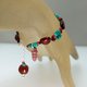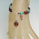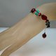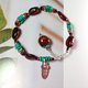 坠脚处宝石(6): 直径11mm天然层状流纹缟玛瑙珠+红珊瑚小管珠+绿松石扁珠+黑琉璃珠各1颗