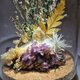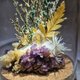 以淡紫与象牙白为主调,搭配干燥金黄叶的层次,呈现出柔和、干净的视觉氛围。透明矿石的折射让整体更明亮,放在桌面就能成为一个安静的小景观。