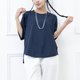 mlu mlu刺绣袖子短袖上衣 /蓝色拼黑色 透气舒适,春夏皆宜