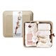 ◆礼盒内含: 送你一朵小花纱布蝴蝶装+送你一朵小花纱布手帕巾+二重织舒棉纱布手帕巾+可爱宝宝轻松袜+米米兔腕带铃铛。