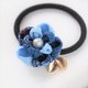 设计可爱的蓝彩系丸花发圈, 搭配金叶