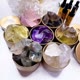 将天然水晶放入小碟或扩香瓶中,可依喜欢的方式自由摆放。