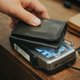 - ・钞票层设有一个不需拿出卡片即可感应的卡层 ・打开皮夹及有两格速取卡格 ・钞票不须对折