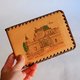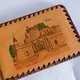 这款手工制作的复古皮银包,是一款来自 Uzès 的旅游纪念品,设计精美且富有地方特色。银包采用柔软的浅啡色皮革,表面刻有 Uzès 城堡的图案,外围边缘则以深啡色线缝制,增添复古质感。