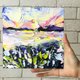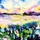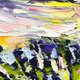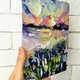 This is an original colorful impasto oil sunset painting by Svetlana Ovchinnikova. Oil painting wall art, painted on a thick cardboard in the style of Impressionism. In this original artwork, I used palette knife in the impasto technique to give depth, volume and texture.