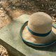 手工编织帽/宽檐渔夫帽/孔雀绿条纹X深卡其 - 帽子 - 棉.麻 卡其色