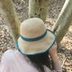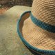 手工编织帽/宽檐渔夫帽/孔雀绿条纹X深卡其