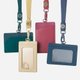 - .两面收纳卡片,一面是透明开窗口袋,另一面为斜口真皮口袋。 .挂绳采立体斜纹编织,有质感份量,兼顾轻量与强靭耐磨。