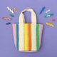 -编织袋饰有彩虹丝带条纹,内衬为中性米色面料