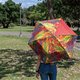 “秋光嬉水”以强烈的色彩碰撞展现奔放的艺术能量,伞面融合鲜红、亮黄、湛蓝与墨黑等多层次色彩,透过渲染与飞溅的笔触,构筑出如火焰燃烧般的视觉张力,充满力量与生命感。独树一格的单片纯红色伞面,又巧妙地打破色彩渲染的密集感,让整体更平衡。适合喜爱活泼热情艺术氛围的使用者。