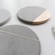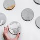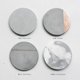 - ‘月亮、曙光、月蚀、大气层’四款围绕地球、太阳与月球的水泥圆垫,厚度 0.5 cm与边缘倒角设计,更显简单俐落,除了可作杯垫,亦可当摆饰盘陈列。四入可任选,搭配出属于自己的太阳系,让桌面形成美丽的焦点。
