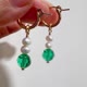绿色水晶在光线下会折射出细致亮度,搭配珍珠柔和的光泽,整体色系温柔又带点气质感,非常适合春夏穿搭、度假造型、约会与日常出门。