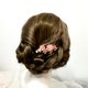 - 温柔的粉色樱花 每片花瓣都有手工细细刻画的纹路 搭配透明而闪耀的水晶珠 编织成柔美的发饰