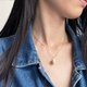 泛着微微粉光,其形状小巧独特,做成锁骨链后适合日常上班或外出约会,是单独或混搭皆可的百搭之选。