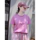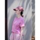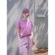 胭脂粉文艺复古亲肤细骨感圆领刺绣宽松针织套头短袖T恤,领口与侧面做了花朵与叶子的绣花,配色的勾线型,不易察觉到的仪式点。