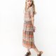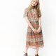 【RE0809D1327】夏复古民族风图腾大地色短袖古着洋装