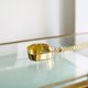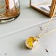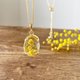 The March flower, Mimosa, was used as a dry wallet, trapped in an oval-shaped resin (resin) that reflects light and sparkles, and made into a necklace.