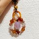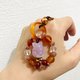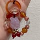 以温润而古雅的盐源玛瑙为主体,织就一环护持气场的结界;中央镇守的是通体粉嫩、温柔中带有神秘气息的粉红九尾狐雕刻,为你召唤爱与守护。