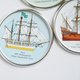 早期德国旧货 古董船金属彩色杯垫 单件贩售 随机出货 尺寸(直径):约9.1(cm) 商品包装_ 提倡环保 避免浪费资源 商品的包装 都会以合适大小的二手箱子和包材来包装 注意事项_ 1. 商品皆为使用过的旧货,多少有些时间的痕迹,可以接受再下订单喔 2. 如对商品有任何问题,欢迎询问 产地/制造方式 德国