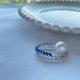 澳白珍珠是珍珠品类中的贵族纱织小姐甄选出一枚11-12mm正圆极光微瑕的冷光澳白珍珠,镶嵌在象征海洋的椭圆形纯银圈环上,并用克莱因蓝的小宝石加以点缀。佩在颈间,独树一帜,自成风景。仅此一件,在此等你。