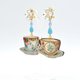 TIMBEE LO 复古茶杯图案木片耳环 缀施华洛水晶