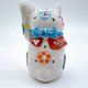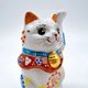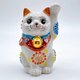 九谷烧以白色招财猫为主题配合色彩缤纷的牡丹