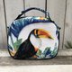 选用收藏布料手作而成,清新白底衬托出巨嘴鸟鲜艳身驱,搭配五金配件以及精致手工,是一款方便手提又具肩背功能的硬挺包款。