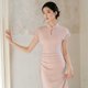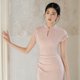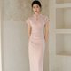 - 【黛丽粉】新中式复古中国风 水滴立领/针织旗袍