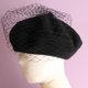 有法国面纱的黑贝雷帽帽子。由羊毛制成100%。尺寸适合55厘米至59厘米。