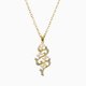 - 【名称】金蛇白玉项链蛇年限定【材质】顶级白翡翠 金色为925纯银镀金 【配石】锆石【尺寸】长3.4 x 宽1.64 x 高0.35厘米【备注】 附Jade Artisan保证书