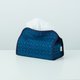 - 小屋面纸套一共六个款式,简单俐落的外型,搭配蓝绿基本色系,能融入居家环境,成为点缀气氛的别致装饰。两端有吊挂用的耳朵,方便挂在家中、车上任何有吊钩的位置,版型硬挺,抽到最后一张也不会因内容物减少而扁塌。