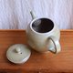 这款茶壶覆盖着碧玉般的青色釉面,釉色清透柔和,如同静谧的山水。柴烧的自然落灰为壶身增添独特纹理,每一层釉色都在窑火中幻化,呈现出丰富的变化与深邃的层次。