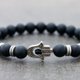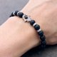 这款手镯由哑光成黑色玛瑙石制成,氧化银镀黄铜和拉伸弹性线。