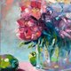 The oil painting Flowers with apples is painted in an abstract style, it will perfectly fit into a modern interior. It brings lightness, romance and joy of life!
