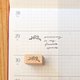 本日印章印章台座使用质地细致的枫木制作,印面也特别把多余橡皮边缘裁去、盖印时较不会弄脏纸面、盖出清晰、干净的图案。特别计算过的印面大小、印在各种尺寸的手帐上都很刚好、不会过小或过大。图案也特别经过设计、如果能够对准手帐框线盖印,就能呈现出宛如在手帐格子中蹓狗、骑单车、甚至荡秋千等效果、有种小小世界的感觉唷。