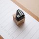 This stamp carved a hard eraser with a cutter.